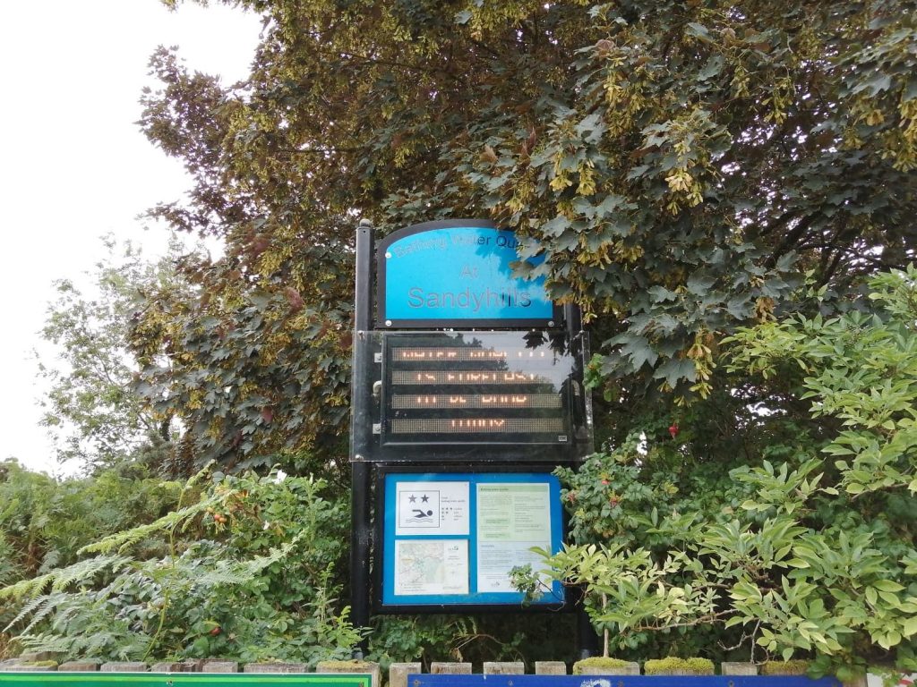 Sampling results are published within a few days of being taken. In Scotland they are published online or via the bathing waters electronic boards (if there is a sign on site). SEPA also posts daily real-time water quality predictions throughout the bathing season for some sites (Brighouse Bay, Dhoon Bay Rockcliffe, Sandyhills & Southerness get daily predictions in the Scottish Solway). The EA, alternatively, have the Pollution Risk Forecast during the bathing season, providing forecasts (valid until midnight on the day of issue) for bathing waters, considering the increased pollution risk due to predictable factors such as weather.